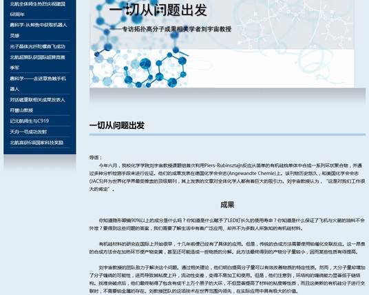 我院2016级博士生于建一在刘宇宙教授的悉心指导下,以唯一一作身份在世界化学界最受推崇的顶级期刊之一德国化学会会志(AngewandteChemie International Edition,影响因子为11.994)上发表相关论文,论文题目为:Cyclic Polysiloxanes with Linked Cyclotetrasiloxane Subunits,即“环环相扣”的环状聚硅氧烷。近期,刘宇宙教授作为课题组负责人接受了学校采访,并在北航新闻网首页“科学研究”专栏进行了报道。