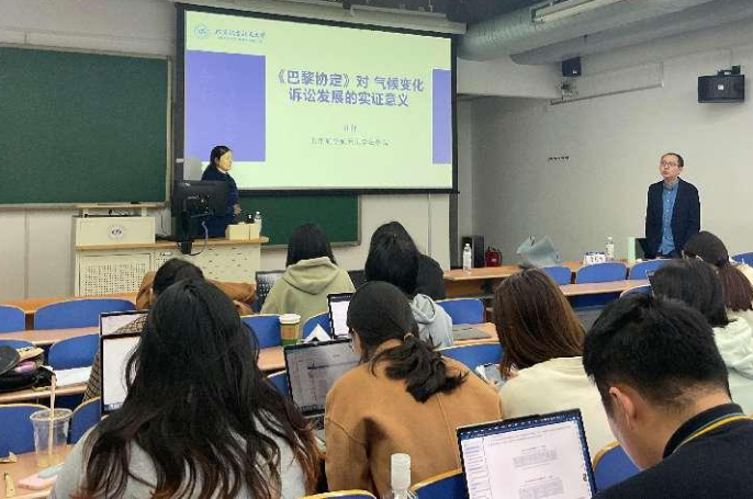 在讲座开始前,主持人吉冠浩副教授对本次讲座的主讲老师和主题进行了简要介绍。杜群教授首先为同学们介绍了题目背景:2015年《巴黎协定》以后,以气候变化或温室气体为案件明确主题的气候变化诉讼,作为独立的诉讼类型在司法领域崭露头角。2023年2月最高法发布的11起典型案例表达了实践中司法机关参与气候变化治理的能动态度,但是我国对气候变化诉讼的理论研究仍然不足。基于此,杜群老师提到,要以全球气候变化法治进程中诉讼法实践与实体法实证影响之间“助产和反哺”的互动作用为视角,对出现的新论题进行阐述和分析。讲座中,杜群老师主要从气候变化诉讼的发展和嬗变、《巴黎协定》为气候变化诉讼设定实证逻辑基础、《巴黎协定》对气候变化诉讼的实证法规范功能、气候变化诉讼发展的中国语境和实证走向四个部分展开。